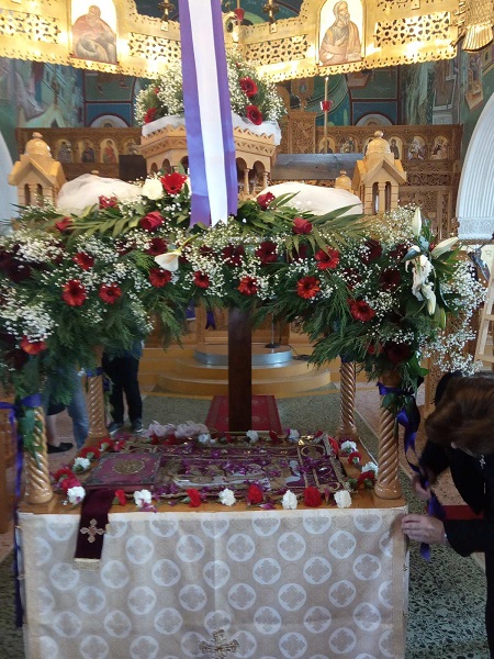 Ο Επιτάφιος ανθοστόλιστος, έτοιμος να δεχθεί το σεπτό Σώμα του Ιησού, στη μεγαλύτερη εκδήλωση αγάπης και θυσίας του Θεανθρώπου για τον άνθρωπο. Το μεσημέρι ο Χριστός αποκαθηλώνεται και τοποθετείται στον Επιτάφιο.