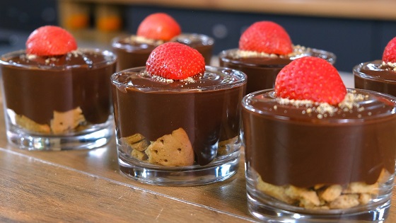 Σε 6 ποτηράκια σπάμε σε μικρά κομμάτια μπισκότα digestive χωρίς ζάχαρη.