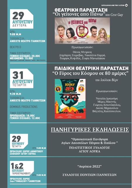 «Πολιτιστικό Καλοκαίρι 2022»: Κορυφαίοι καλλιτέχνες στο Ανοιχτό Θέατρο Γιαννιτσών - Το πρόγραμμα