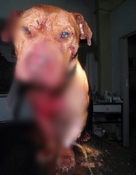 Στο αυτοκίνητο αυτό, «υπήρχε κλουβί με ένα ζωντανό Pit Bull, χρώματος μπεζ, έντονα φοβισμένο και σοκαρισμένο, με κακή θρεπτική κατάσταση, παρουσίαζε υποθερμία, έφερε σοβαρό και εκτεταμένο πρόσφατο τραύμα στο πτερύγιο του αριστερού αυτιού και κάτω από αυτό στο δέρμα του τραχήλου, τραύματα στο κεφάλι, στην έσω επιφάνεια του άνω χείλους, καθώς και στα πρόσθια και οπίσθια άκρα, τα οποία (τραύματα) ήταν πρόσφατα και αιμορραγούσαν, προκλήθηκαν, δε από αμβλύ διατιτραίνων όργανο τις τελευταίες 1 – 5 ώρες».