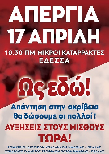 Το Σωματείο Ιδιωτικών Υπαλλήλων Ημαθίας – Πέλλας δυναμώνει τις παρεμβάσεις του σε χώρους δουλειάς, με στόχο την επιτυχία της απεργίας στις 17 Απρίλη. Για τις αμέσως επόμενες μέρες, αποφάσισε συγκεκριμένα για την πόλη των Γιαννιτσών:
